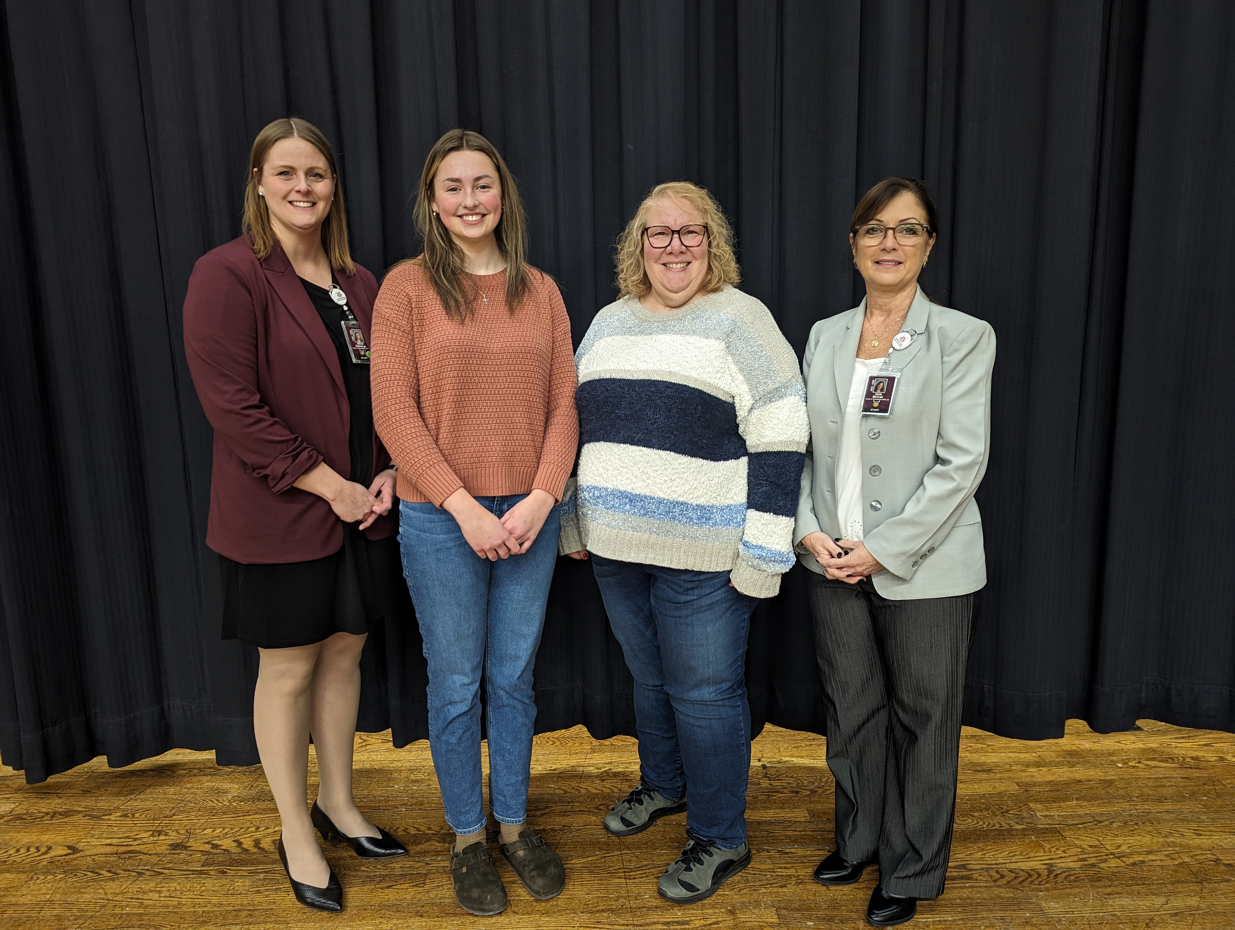 Claire Ouelette with her Superintendent Jane McCall, her Social Studies teacher Allison Ladner (who nominated her), and Principal Jamie Selfridge