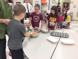 led the educational sessions with the students. During the class, students from fourth and fifth grades made fresh curried carrot soup and carrot muffins.
