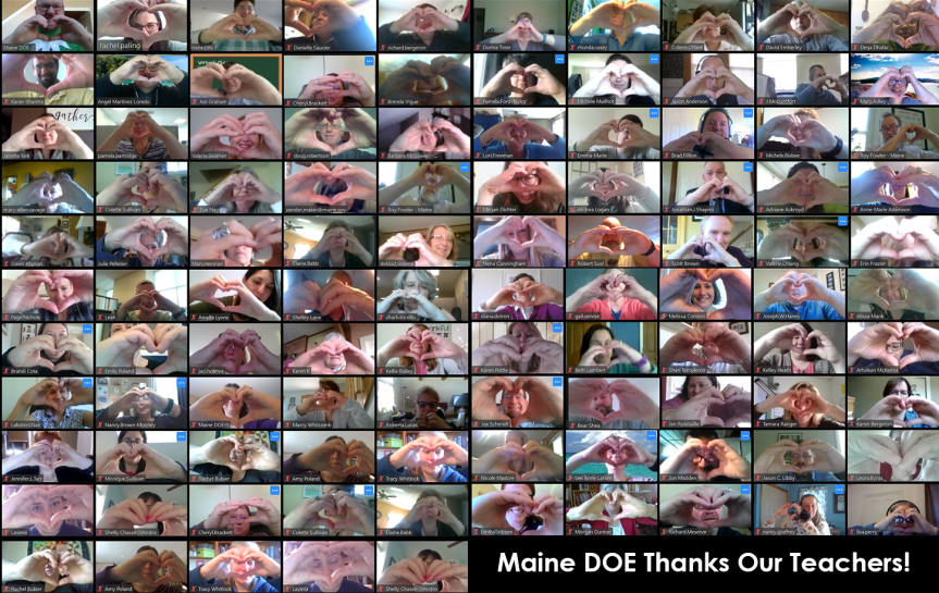 During a regular Maine Department of Education (DOE) conference call that hosts more than 125 staff members each week, staff were invited to share the name of a teacher who has positively impacted their lives as a nomination for a random drawing for a gift card for Teacher Appreciation Week.