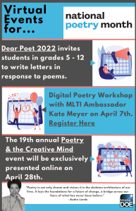 - Digital Poetry Workshop with MLTI Ambassador Kate Meyer on April 7th – Register Here