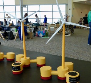 Twenty-one teams filled the Ocean Gateway in Portland as the Maine State KidWind Challenge returned following a three-year hiatus. “KidWind is a hands-on design celebration that engages students through the lens of wind and solar energy. Student teams design, construct and test small scale wind turbines and solar structures at events all over the world.” The national competition, which ballooned in size in 2009, has engaged over 40,000 students across 33 states. For this event, teams from five different Maine public schools brought turbines and presentations that they have been working on for weeks. They presented their materials to a panel of judges, and their turbines were put to the test in a wind tunnel to see how much power they generate. The results are projected up for competitors to watch as an energy sensor measures the voltage and current output of the turbines.