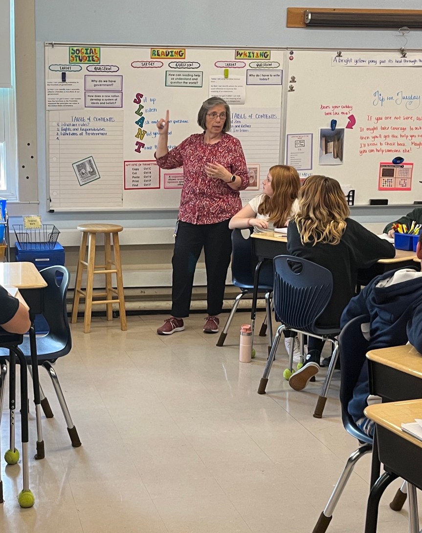 What’s also evident is just how much Mrs. Berger is a fixture of the community. Whether it’s speaking at the library about civics, bringing in guest speakers for her class, going to community events, or promoting her school, she is constantly building bridges between Miller School and the rest of the community.