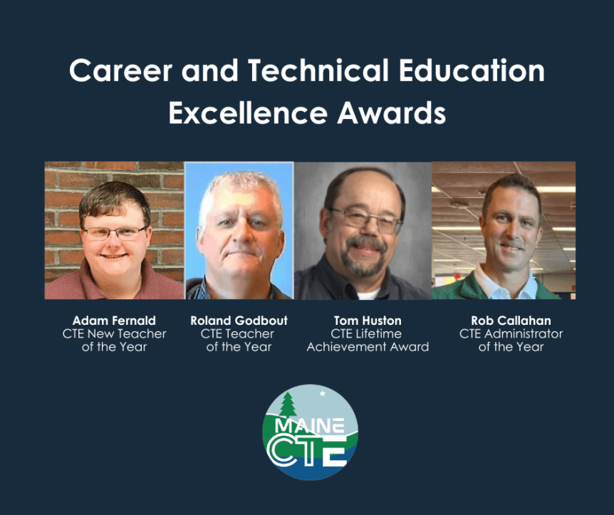 The CTE Excellence Awards are administered through Maine Administrators of Career and Technical Education (MACTE) and the Maine Association for Career and Technical Education (ACTE-ME). Each recipient will advance to the regional level for a chance to progress to the national level through the National Association of Career and Technical Education (ACTE). You can find descriptions of these awards on ACTE’s website.