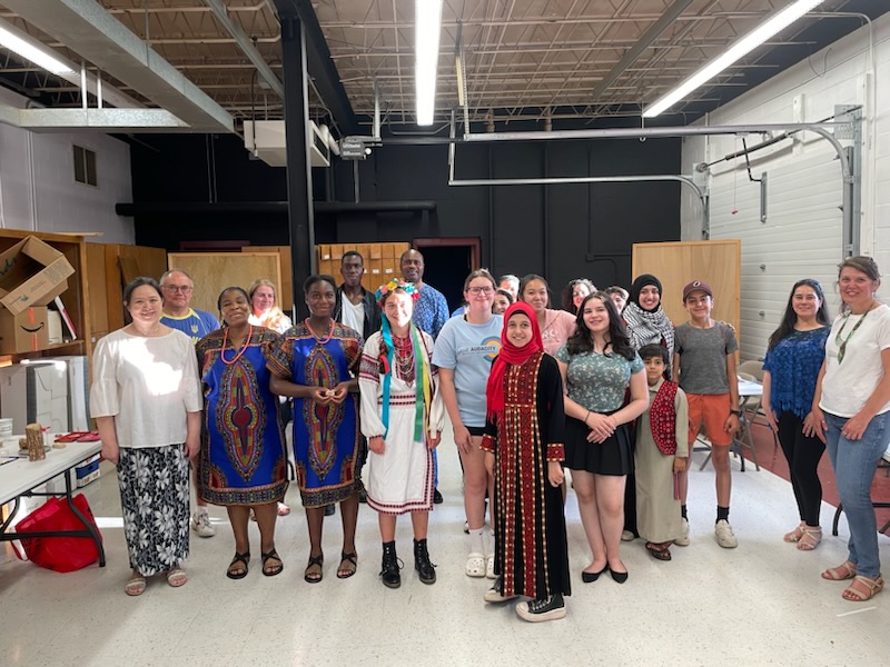 Students and their families pose for a photo at the culture festival