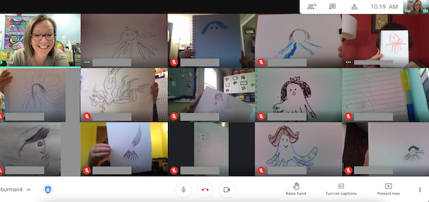 “Then I decided that instead of me just painting what I wanted on the walls, I would incorporate the ideas of my students from our Google meets,” explained Burman. Since October she has engaged students to help create the collaborative mural, a project that all of the students in all of her classes, grades K-5 at both Dyer and Kaler, get to participate in.